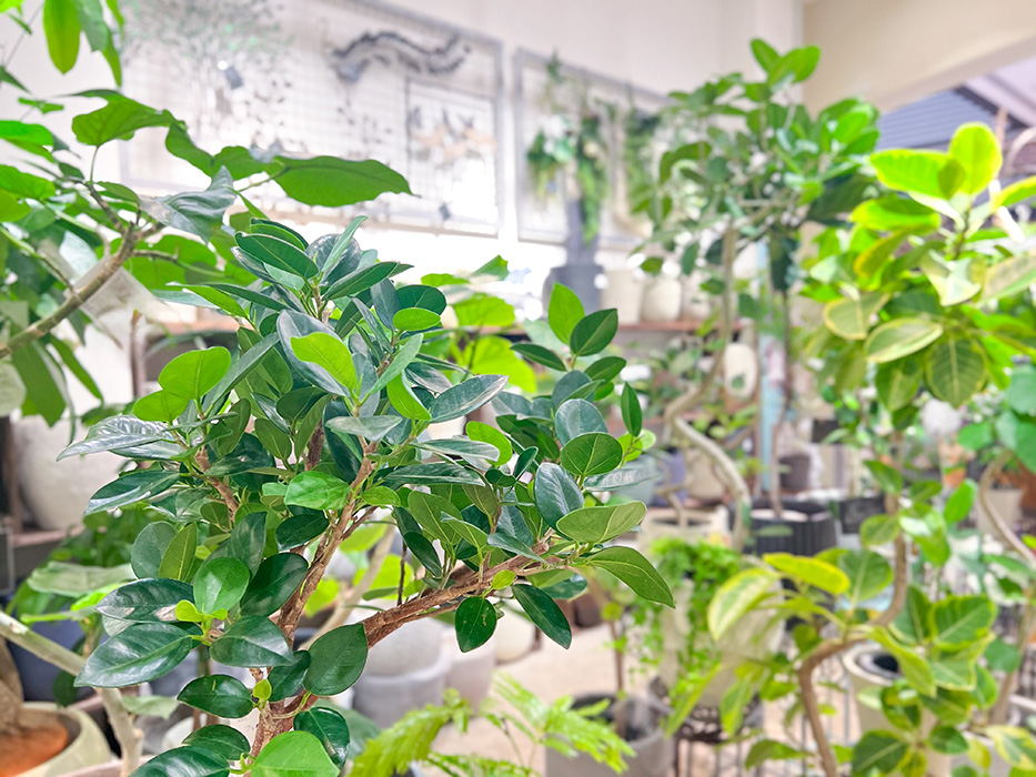 丈夫で育てやすいゴムの木などの観葉植物や、